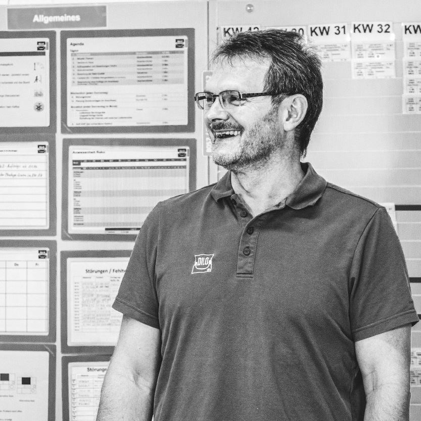 Chief Executive Officer Scheller pays attention to a productive handling of errors: “If a manager is asked about optimization potential, he or she quickly feels attacked. Here, the reaction should be, ‘Great, thank you very much!’” The DILO chief was also confronted with this challenge in the initial phase. Every week a trained multiplier gave him feedback on his leadership performance in Shop Floor Management. “At first, it felt strange to have an employee tell me what I could have done differently. But it’s really productive. To fully exploit the optimization potential, everybody has to learn to accept feedback – on every level of the company.”