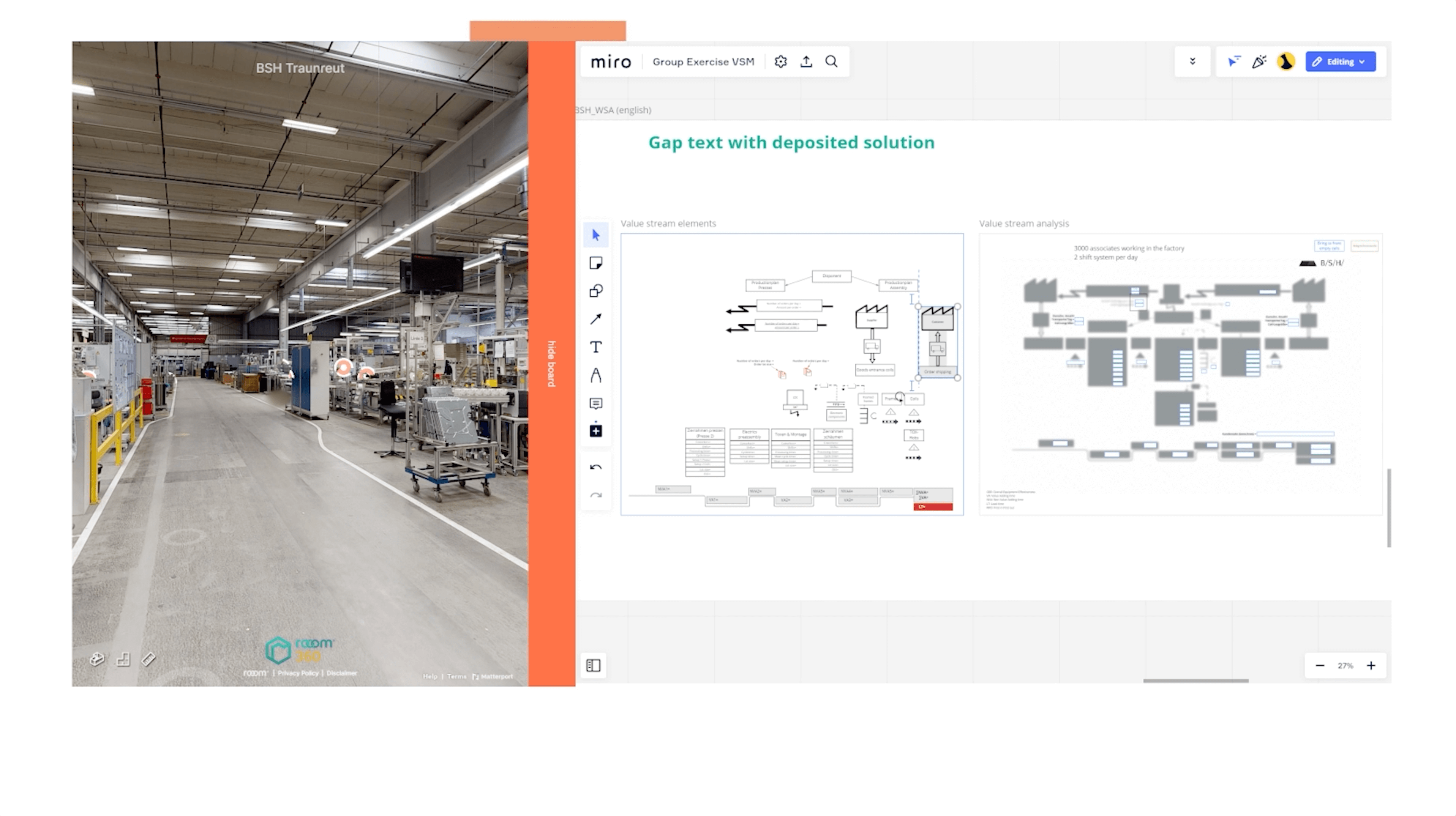 The training presented above is just one example, many more could follow. BSH also relies on learning in the digital space in the area of value stream analysis in the digital space. “The training is important in order to be able to read and interpret information and material flows end-to-end in practice,” says Alexander Fuchs from the Bosch Production System at BSH. However, a real exercise on site has so far often disrupted the production process in the factory, employees had to be available to show the learning groups around. All this is eliminated with the virtual tour.